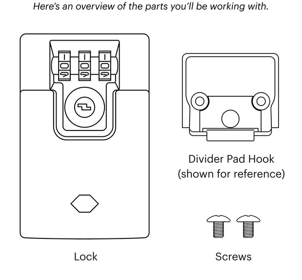 - Remove the divider pad hook and set it aside. Separate the lock away from the exterior of the luggage shell. You can discard the broken lock.
