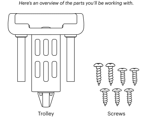- Slide the new trolley into place, ensuring the poles go through the inner trolley reinforcement.