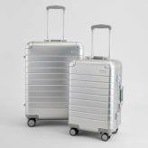 You can clean your bag’s exterior and interior using a soft damp cloth and mild soap. Keep in mind that an aluminum suitcase is like an open passport—you can see everywhere it’s been (and that’s a good thing). So don’t fuss over every scuff and scratch on your bag—each mark has a story behind it. If you remove a sticker from your suitcase (like the one explaining the combination lock) and a little adhesive stays behind, use an alcohol-based wipe to wipe the surface clean.