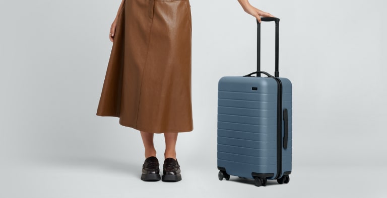 If you have suitcases in multiple sizes, you can nest them inside each other to save space: Just unzip the left side of the larger suitcase and set the smaller one inside—with the wheels all facing the same direction—then zip the larger bag closed.