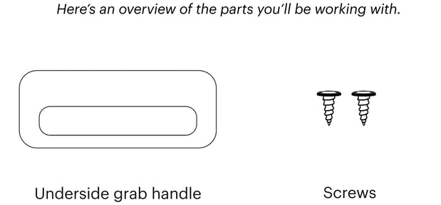 Put the new underside grab handle in place, lining up the screw holes on the grab handle with the screw holes on back plate