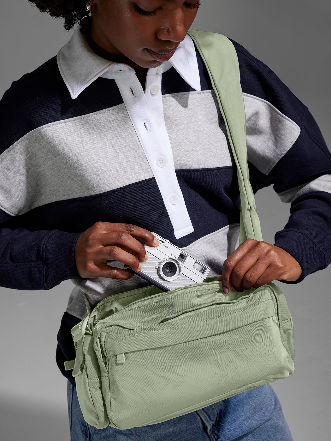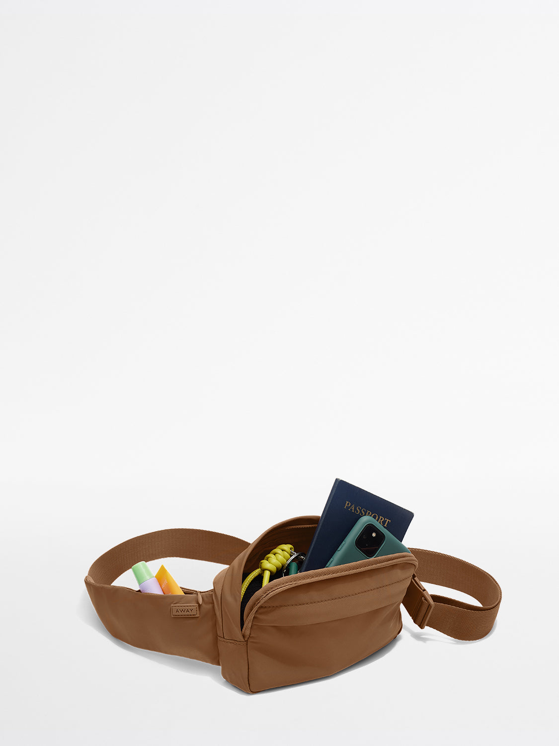 If you’re tired of crossbodies with narrow straps that dig into your shoulders, we're here to show you there's another way. Away crossbody bags have comfortable, wide straps with flexible fabric that moves with you. They're light in weight but strong in character. Cheers to that.