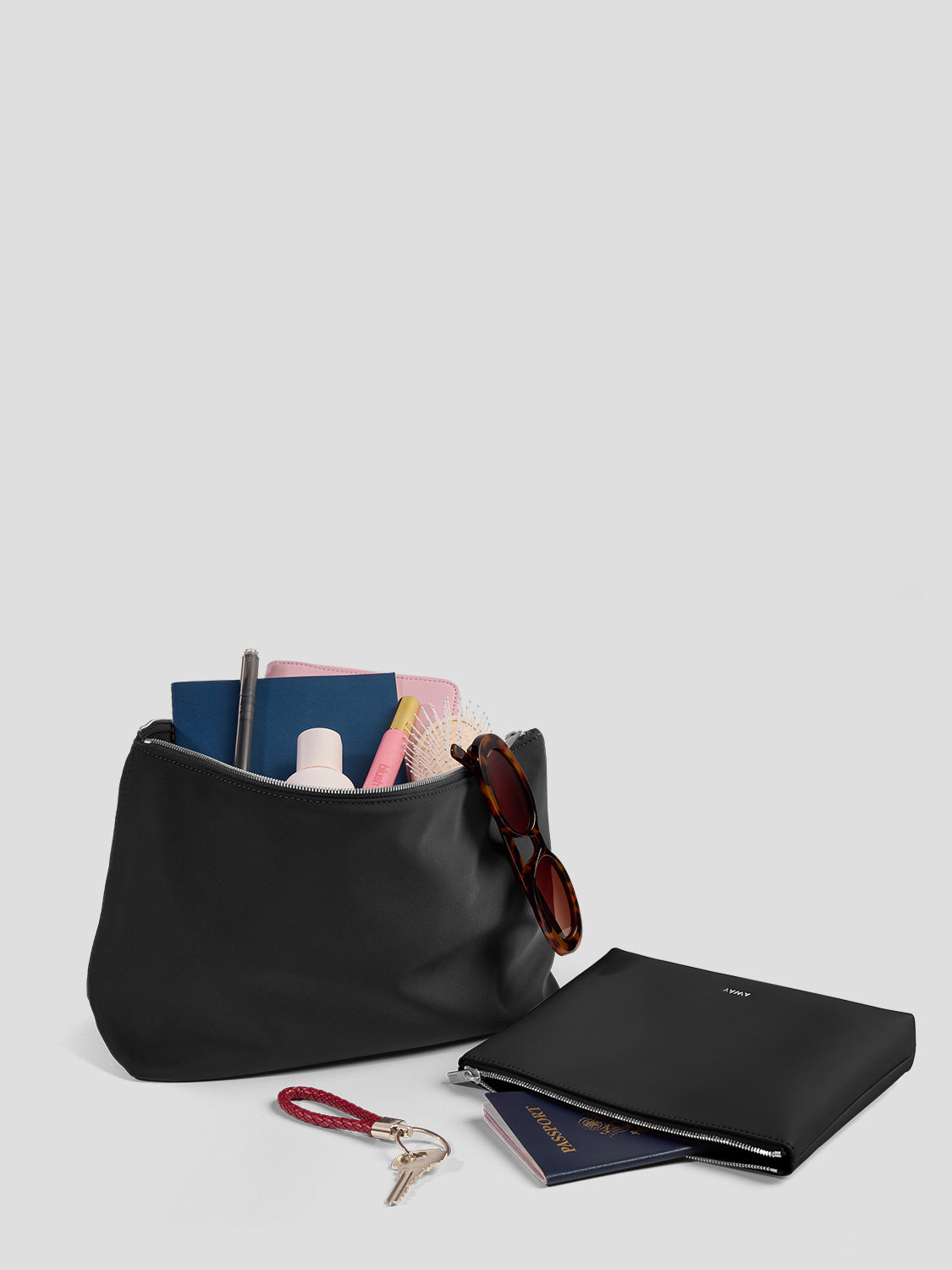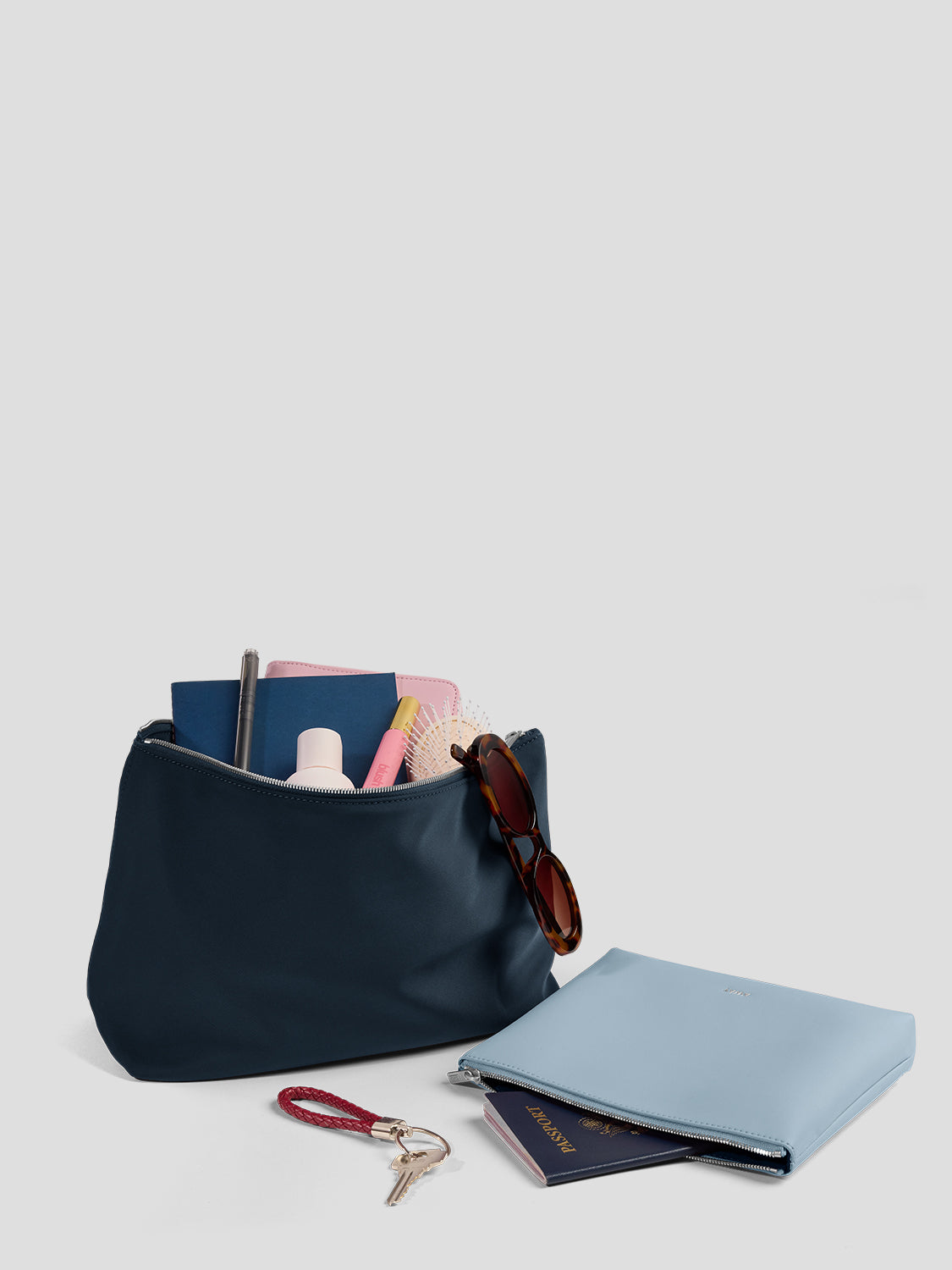 "I can’t say enough good things about this suitcase. My husband and I travel up to 5 months on some trips and we need formal and casual and sport clothes in different seasons. We are able to do that with each of us using an Away set made of The Large, The Medium, and Carry-On bags. These bags are designed so well with the compression flap and the mesh side—it makes it so easy to pack! Plus, customer service is so good! Thanks, Away!"