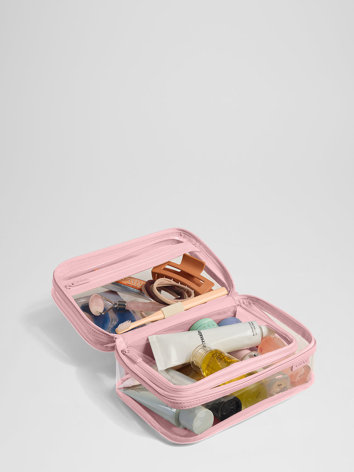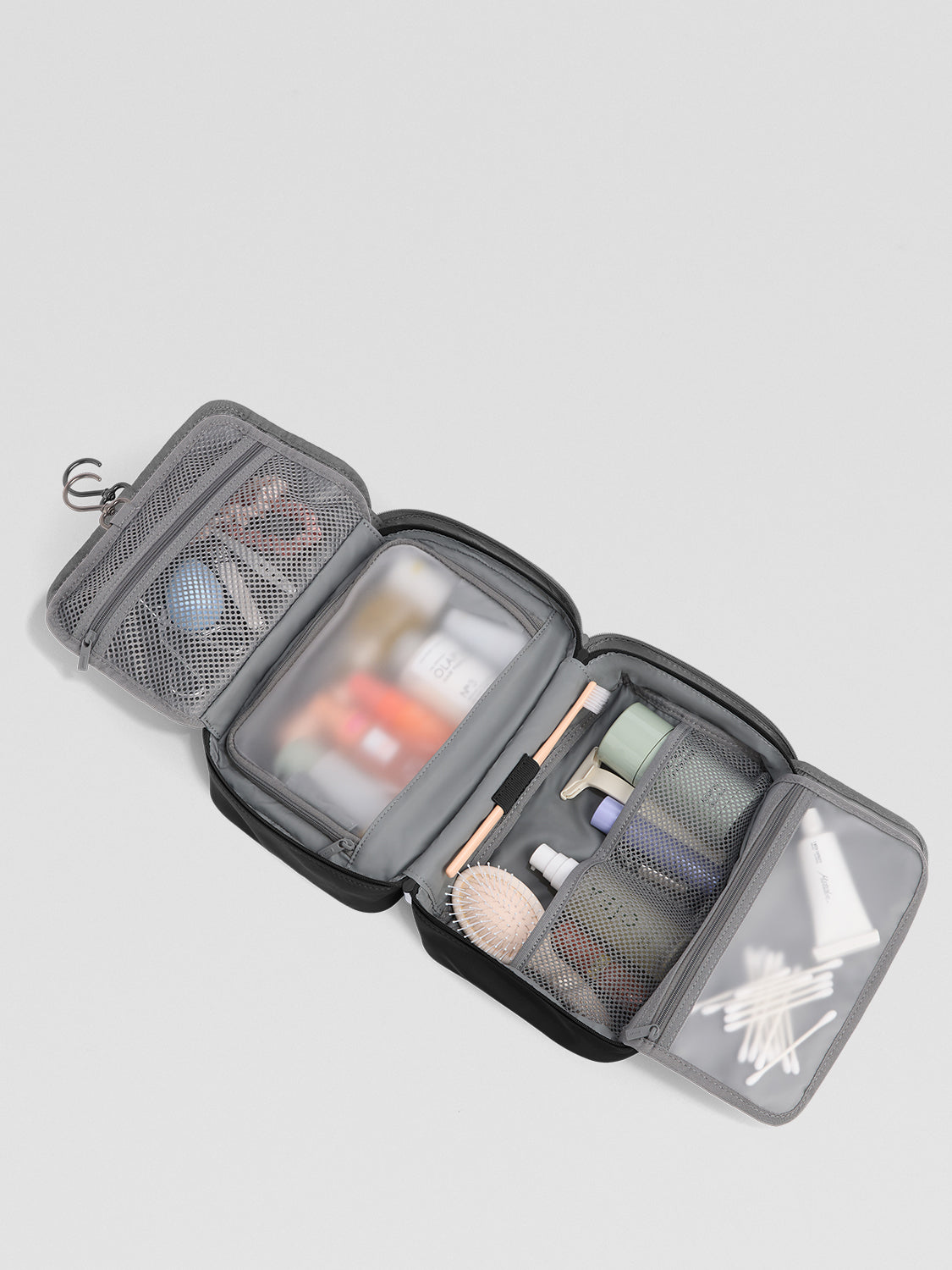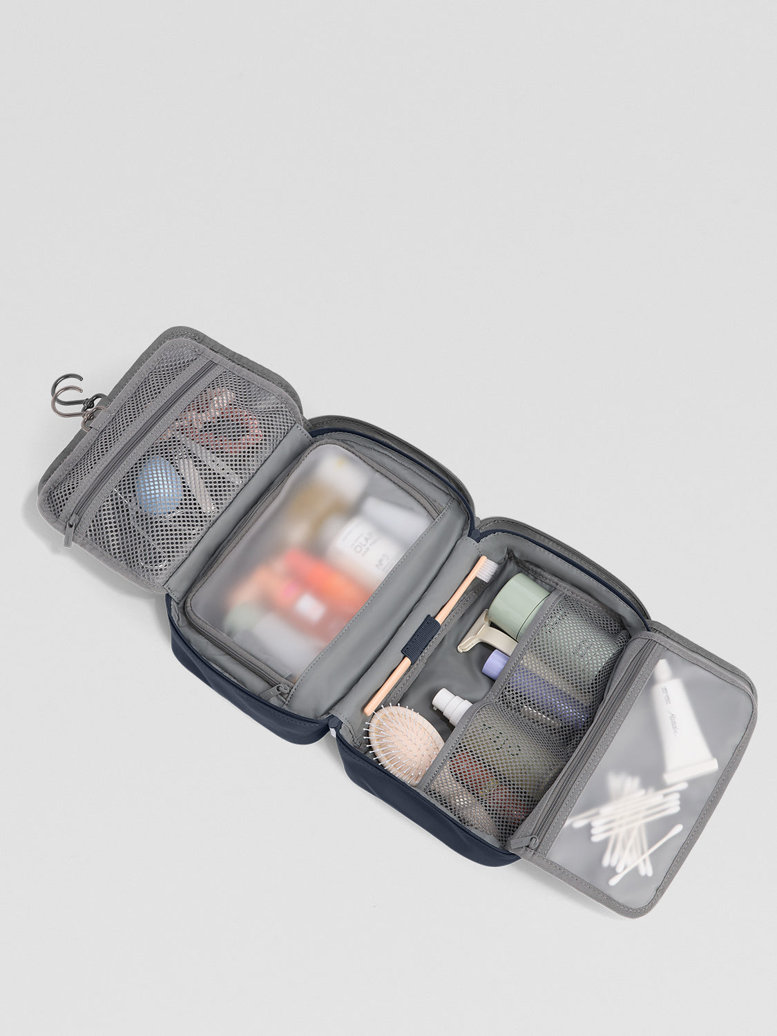 Need more space? The Large Toiletry Bag continues the convenience with large see-through pockets and a central zip pocket for grab-and-go items. Our Hanging Toiletry Bag also comes with a secure hook to hang up your case, along with mesh pockets and a removable pouch for your favorite products.