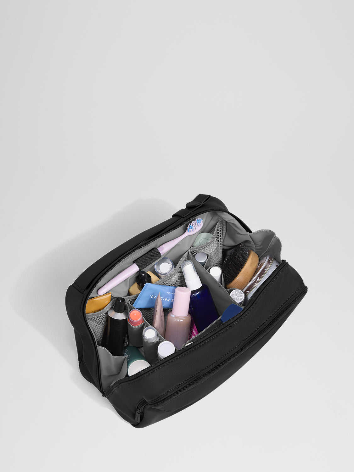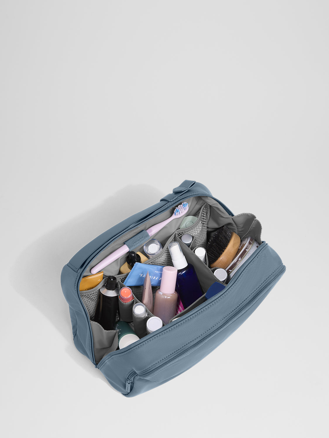 There's a lot to love about our toiletry bag collection, from the multiple inner compartments to the exterior pocket and wraparound zip closure. The Small Toiletry Bag has all the organization you need for shorter trips, with a handy clamshell opening for lay-flat use. One pocket has a transparent cover, while the other features mesh, keeping all of your things visible and secure. That means plenty of storage for small bottles, brushes, wipes, and other essentials.