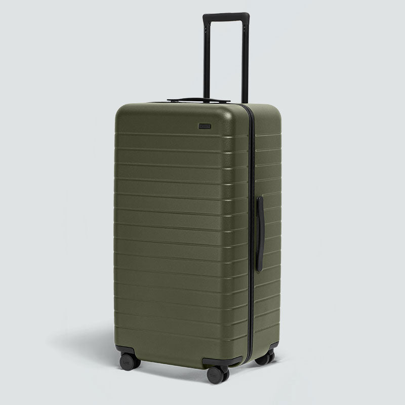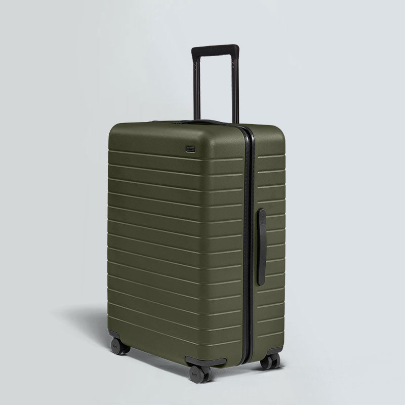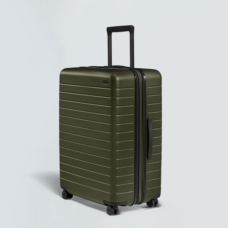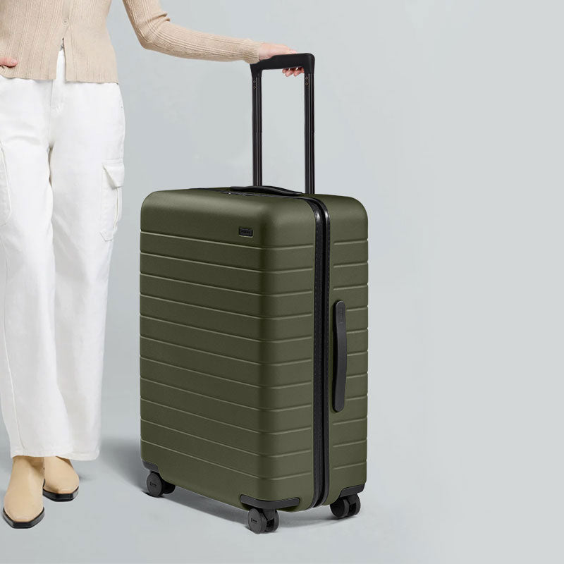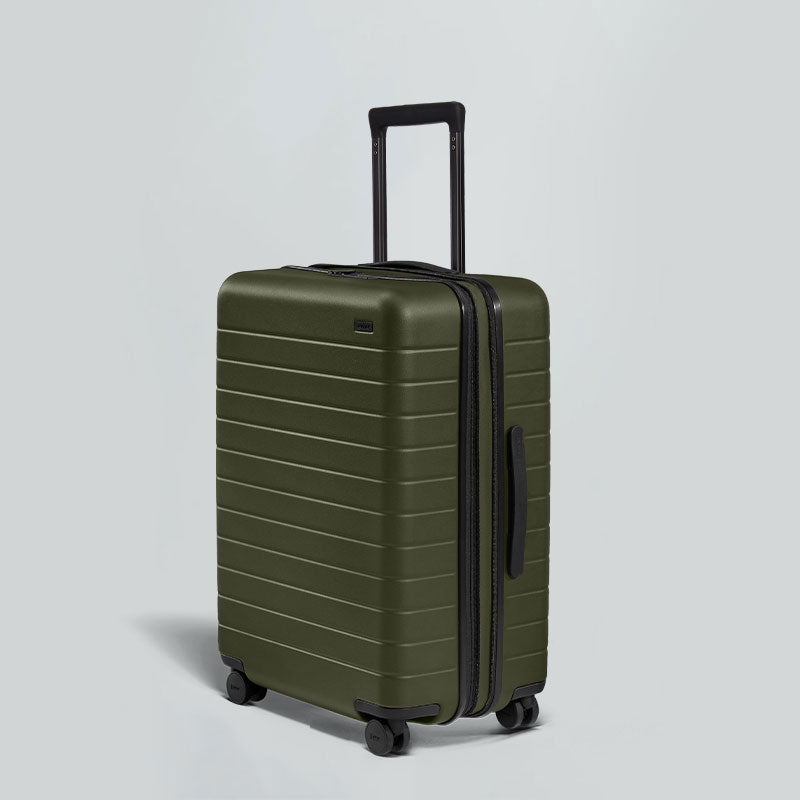 Our midsize checked suitcase, perfect for long trips. | The flex feature makes trips more manageable. | Our checked suitcase designed for those extra long trips. | Perfect for squeezing in a few extra outfits. | Inspired by iconic travel style and designed with extra capacity in mind. | |