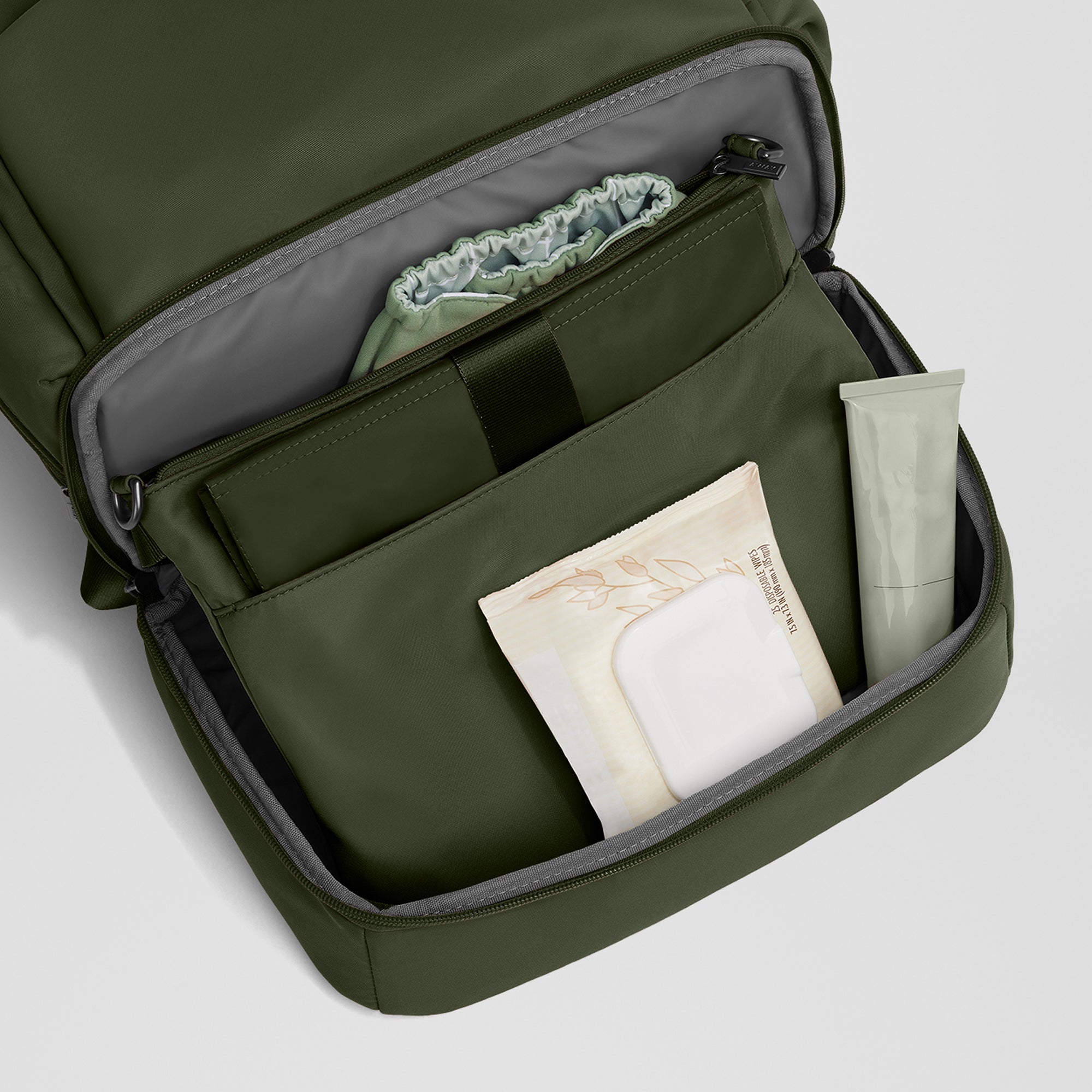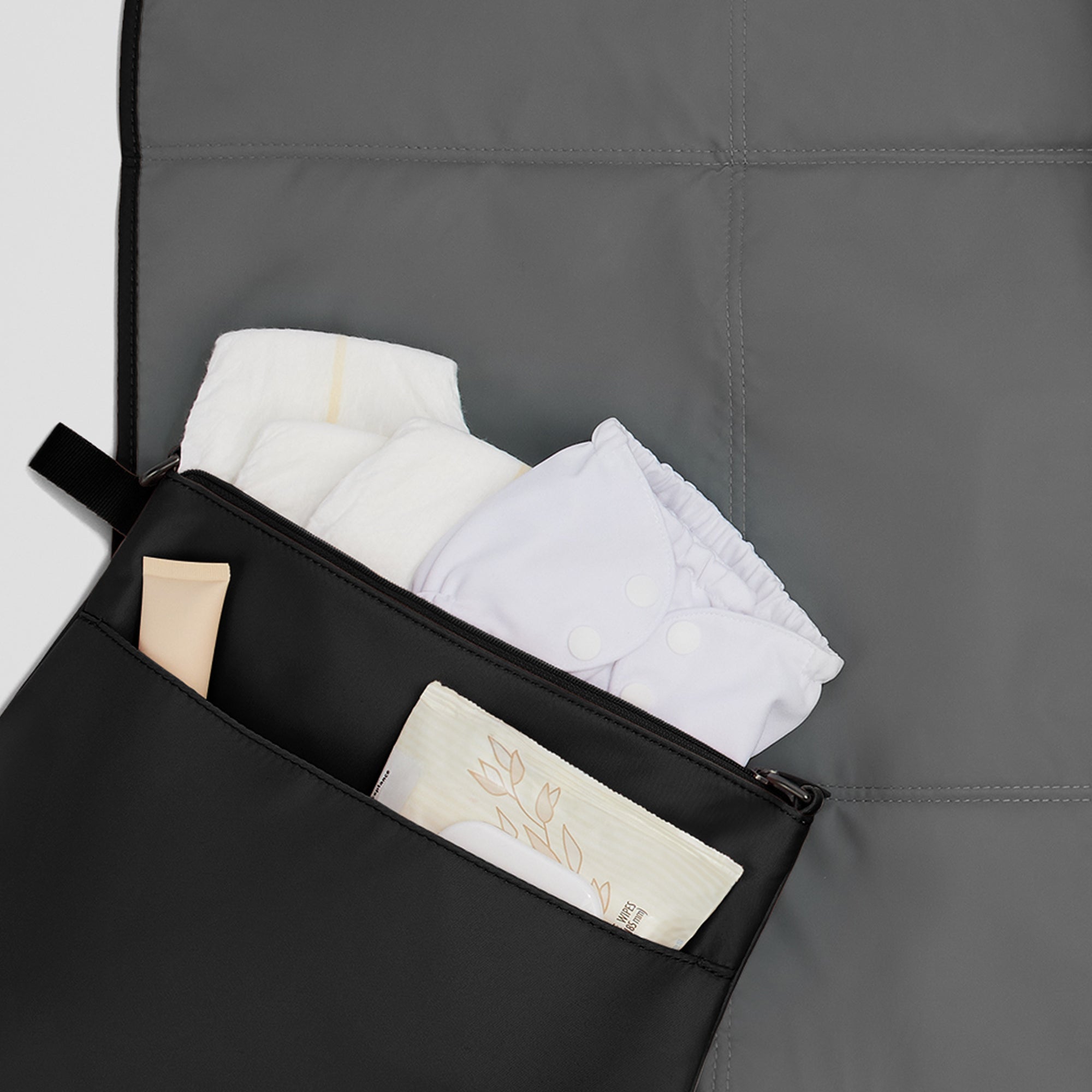The bottom compartment is the perfect hideaway for dirty items. Water-resistant and wipeable, it helps keep messes contained and makes on-the-go parenting a breeze.