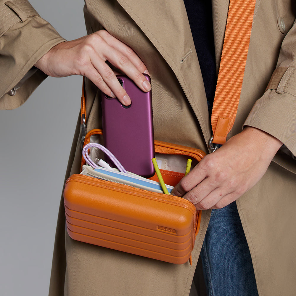 Our fan-favorite Mini is back and better than ever with a fresh (and functional) crossbody look. Crafted from our signature polycarbonate hardshell that’s rigorously tested for durability—it features an interior organization system to keep all your goods in place, like your fave lip gloss, sunglasses, wallet and whatever else you need. While it’s mini in size, this crossbody has major function. Use it as a packing cube in your suitcase or bag for chargers or toiletries, and attach the adjustable strap when you reach your destination for the perfect, hands-free crossbody.